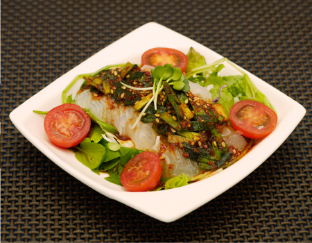 6. 食べる前にタレをかけて鯛と野菜をよく混ぜてから食べる。